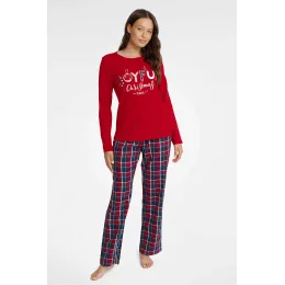 Dámske pyžamo Glance je jedinečná nočná bielizeň, ktorá vás slávnostne naladí hneď, ako si ju oblečiete. Módny set sa skladá z červenej blúzky s dlhými rukávmi a pohodlných károvaných nohavíc. Tričko zdobí aj veľký nápis Radostný vianočný čas. Dámske dvojdielne pyžamo Glance je vyrobené z mäkkej bavlny, takže vás jemne obopne a zaistí vám pohodlie počas dlhých zimných večerov.