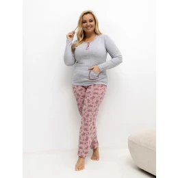 Rozmery pyžama veľkosti XL merané na plocho: blúzka: šírka v podpazuší - 56 cm, dĺžka rukávu - 59 cm, celková dĺžka - 69 cm, šírka spodku - 55 cm, nohavice: šírka v páse - 35 cm (na plocho), šírka v páse - 69 cm (po natiahnutí), šírka v bokoch - 60 cm, celková dĺžka - 99 cm.