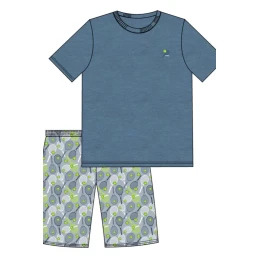 Pánské pyžamo z vysoce kvalitní měkké bavlny, tričko s krátkým rukávem a jemným potiskem na hrudi, krátké vzorované šortky, v krabičce.