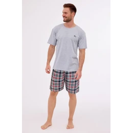 Pánské pyžamo z kvalitní měkké bavlny, tričko s krátkým rukávem a jemným potiskem na hrudi, krátké kostkované šortky, v krabičce.