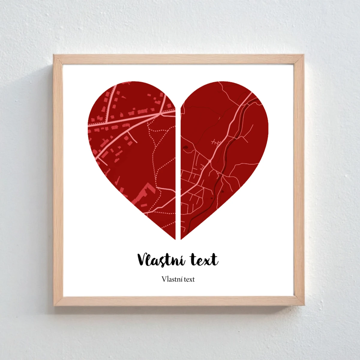 Personalizovaný magický fotoobraz v rámu - čtverec 20x20 - dvě mapy jako srdce