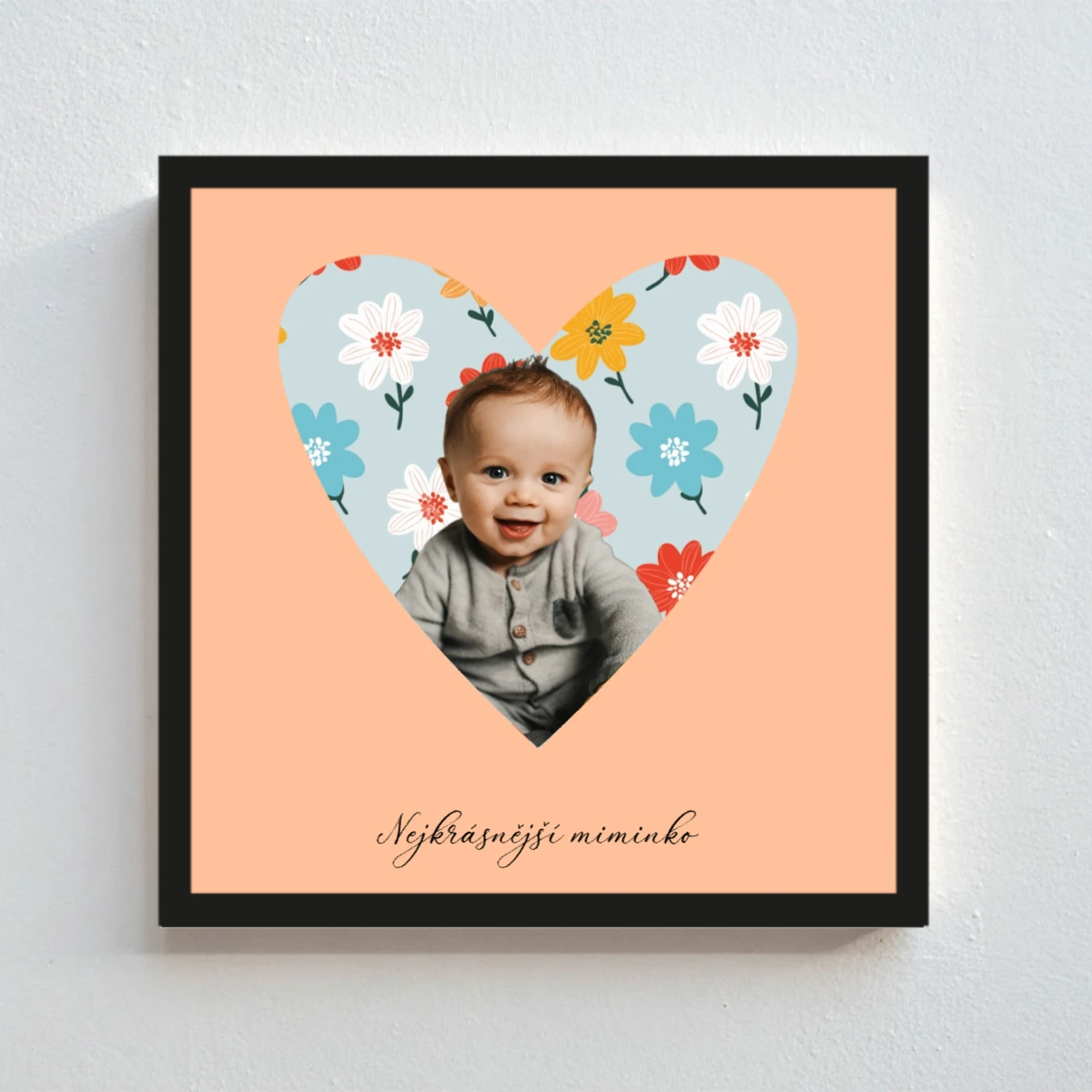 Pro finální podobu si můžeš vybrat i tvar výřezu – jemné srdce nebo kolečko – a doplnit plakát o vlastní text v barvě podle tvého výběru. Vznikne tak originální a osobní kousek, který je ideální jako dárek i jako stylová dekorace.