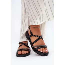 Płaskie Sandały Z Ozdobnymi Paskami Vinceza 17379 Czarne