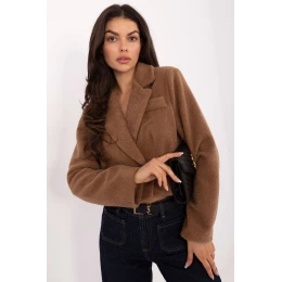 Tento dámsky krátky kabát s elegantným strihom je ideálnou voľbou na jesennú a zimnú sezónu. Je vyrobený z vysokokvalitného polyesteru, pôsobí štýlovo a esteticky, pričom si zachováva ľahkosť a pohodlie pri nosení. Model má klasický golier so širokými nariasenými manžetami a dvojradové zapínanie na gombíky, ktoré podčiarkuje jeho elegantný charakter. Hladký materiál a prepracované detaily zaručujú, že kabát je ideálny na každodennú štylizáciu, ako aj do práce alebo na formálnejšie udalosti. Dlhé rukávy a podšívka zabezpečujú pohodlie počas chladnejších dní, zatiaľ čo krátka dĺžka dodáva kabátu moderný, ženský nádych.