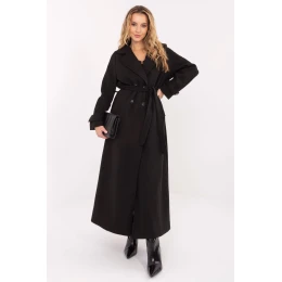 Tento dámsky dlhý kabát je elegantnou ponukou na prechodné obdobie jesene, zimy a jari. Je vyrobený z vysokokvalitného polyesteru v klasickom hladkom vzore a spája štýl a funkčnosť. Model so širokým golierom a dvojradovým zapínaním na gombíky podčiarkne elegantný charakter každej štylizácie. Kabát má vsadené vrecká, pás na zaväzovanie v páse a podšívku, ktorá zaručuje pohodlie a jednoduché nosenie. Skvele sa hodí na každodenné, spoločenské a kancelárske štylizácie a dodá eleganciu a triedu každému ženskému vzhľadu.