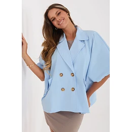 Krátký dámský kabát volného střihu je ideální nabídkou pro jaro/léto pro ženy, které ocení pohodlí a volnost stylizace. V casualovém stylu se skvěle hodí jak na běžné nošení, tak jako součást pracovního outfitu. Model vyrobený z hladkého polyesteru vypadá minimalisticky a moderně, díky čemuž ho lze snadno sladit s různými outfity. Klasický límec s klopněmi dodává eleganci a dvouradé zapínání na knoflíky zdůrazňuje nadčasový charakter kabátu. Volný střih a krátká délka zajišťují pohodlí nošení a volnost pohybů. Další výhodou jsou krátké široké rukávy, které dodávají celkově módní, trochu nonšalantní vzhled. Kabát nemá žádnou podšívku, proto se skvěle hodí na teplejší přechodné dny. Vnitřek je vybaven podšívkou, což zvyšuje pohodlí při nošení a estetiku provedení. Jedná se o univerzální a stylový výběr pro ženy hledající lehký vrchní oděv na běžné nošení a do práce.