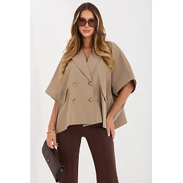 Krátký dámský kabát volně padnoucího střihu je ideální nabídkou pro jaro/léto pro ženy, které ocení pohodlí a volnost stylizace. V casualovém stylu se skvěle hodí jak na každý den, tak jako součást outfitu do práce. Model vyrobený z hladkého polyesteru vypadá minimalisticky a moderně, díky čemuž se snadno hodí k různým kombinacím. Klasický límec s klapkami dodává kabátu eleganci, a dvouřadé zapínání na knoflíky zdůrazňuje nadčasový charakter kabátu. Volný střih a krátká délka zajišťují pohodlí nošení a volnost pohybů. Další výhodou jsou krátké, široké rukávy, které dodávají celku módní, trochu nedbalý vzhled. Kabát nemá žádnou podšívku, proto se skvěle hodí do teplejších přechodných dní. Vnitřek je vybaven podšívkou, což zvyšuje pohodlí nošení a estetiku provedení. Jedná se o univerzální a stylovou volbu pro ženy hledající lehké vrchní oblečení na každý den a do práce.