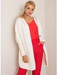 Kobaltový kabát z alpaky s kapucňou.