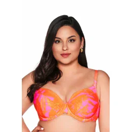 Neónovo ružová a odvážna oranžová farba sú pútavé, zatiaľ čo vystužené košíčky podprsenky poskytujú oporu. Nastaviteľné ramienka a zlaté doplnky dodávajú exkluzívny nádych