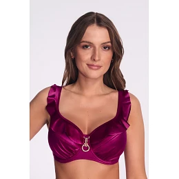 Zvýraznite svoju ženskosť a pocíťte plnosť pohodlia s plavkovou podprsenkou AVA SK 249 Magenta, ktorá má mäkkú konštrukciu s kosticami, ktorá jemne obopína a tvaruje poprsie, čím zabezpečuje prirodzený vzhľad a pohodlie aj pri celodennom nosení. Jemné nariasenie na ramienkach dodáva ľahkosť a romantiku, zatiaľ čo ozdobný zlatý prívesok s krúžkom na šperky upúta pozornosť a dodáva luxusný vzhľad.