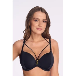 Plavková podprsenka s polovičnými košíčkami SK 253 Black je zmyselnou voľbou pre ženy, ktoré ocenia eleganciu, dokonalé nadvihnutie poprsia a módny dizajn. Vystužené tvarované košíčky s nižším strihom jemne odhaľujú hornú líniu poprsia, príťažlivým spôsobom tvarujú a zaobľujú prsia.