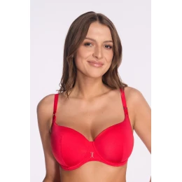 Model ponúka stabilnú oporu vďaka kosticiam a nastaviteľným ramienkam, ktoré umožňujú prispôsobiť podprsenku vašim individuálnym potrebám. Jemné ozdoby na mostíku a ramienkach dodávajú rafinovaný vzhľad. Intenzívna šarlátovo červená farba dodáva sebavedomie a hodí sa pre všetky typy pleti: