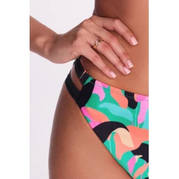 Dvojité čierne pruhy na bokoch nielenže dodávajú moderný, mierne dravý nádych, ale aj opticky zoštíhľujú siluetu. Farebná potlač v intenzívnych odtieňoch tyrkysovej, ružovej, broskyňovej a čiernej farby je skutočnou pastvou pre oči a dokonale sa kombinuje s podprsenkami SK 250 a SK 251 z rovnakého radu Midnight Sorbet.