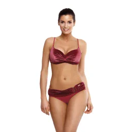 Něco úplně jiného! Sexy a velmi elegantní plavky ušité z italské látky připomínající měkký velur. Je obdařena nádherným perleťovým leskem a přepychovým vzhledem, okamžitě dodá šarm, přitahuje pozornost a nádherně zdobí tělo. Push-up podprsenka s tvarovanými, vyztuženými košíčky s kosticemi v klasickém, osvědčeném, velmi dobrém designu - umožňuje sbírat, zvedat a opticky zvětšovat prsa. Push-up je součástí každé velikosti plavek a není možné jej z modelu vyjmout. Nastavitelná ramínka, obvod pohodlně zavázaný na zádech. Elegantní spodní díl bikin s páskem vpředu. Na výběr je mnoho fascinujících barev. Objednejte si ji a přesvědčte se sami. Doporučujeme 100% Složení: 80% polyamid, 20% elastan.