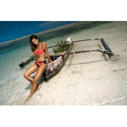 Dvoubarevné plavky, které působí obzvlášť žensky. Vyztužené košíčky s kosticemi a vestavěnou jemnou push-up výplní (dostupné od velikosti S až po XL včetně) dokonale shrnují prsa do dekoltu, zvedají je a svůdně zvětšují. Díky mírně vyztuženému středu je podprsenka velmi pohodlná a hodí se i na plážové párty. Nastavitelné popruhy. Obvod se zapíná sponou. Kostým vyniká také skvělými spodními díly. Velmi pěkně leží na siluetě a vypadají elegantně a lákavě ("prasklina" na boku).