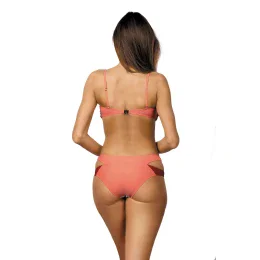 Novinka! Fenomenální dvoudílné plavky se zkroucenými košíčky pro velmi přirozený efekt pevných, zvednutých a opticky zvětšených prsou. Naše nejoblíbenější v této kolekci! Vyztužená spodní část s push-up vycpávkami a bočními kosticemi. Nastavitelná ramínka s možností úplného odepnutí (můžete si rovnoměrně opálit tělo). Obvod se zapíná sponou. Rajské barvy. Spodní díl bikin má velmi zajímavý střih - s prasklinami na bocích dobře sedí a pěkně tvaruje boky. Jsou podšité, nejsou průhledné a mají vynikající výšku.
