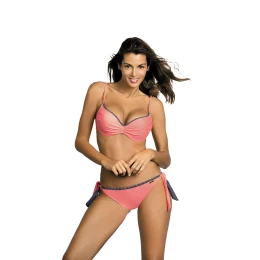 Hladké dvoudílné plavky doplněné vzorovaným lemováním. A skvělé barevné provedení. Velmi ženské. Košíčky podprsenky byly profesionálně vymodelovány a vyztuženy - dobře sbírají prsa do výstřihu, zvedají je a díky podšívce a push výplni je navíc opticky zvětšují. Výstřih - mírně prohloubený, ale stále velmi elegantní, vyvážený. Nastavitelné popruhy. Obvod je tentokrát pohodlně svázán vzadu. Spodní díl se zavazuje na bocích. Kostým vypadá opravdu skvěle. Zajistí vám naprosté pohodlí na pláži.