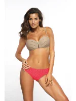 Elegantný kostým s nádychom slávnostnej atmosféry, ktorý obsahuje hladkú podprsenku, mierne stiahnutú v strede, s krásnou zlatou brošňou a samozrejme veľkou push-upkou, v kombinácii so sexy brazílskymi nohavičkami.