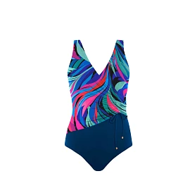 Plavky SELF Bari 10 - S1069V1 sú štýlovou ponukou pre ženy, ktoré ocenia eleganciu v kombinácii s moderným tropickým dizajnom. Výrazný vzor v intenzívnych farbách priťahuje pozornosť a dodáva celku jedinečný dovolenkový charakter.