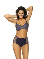Podprsenka s vyztuženými košíčky, kosticemi a zabudovanou permanentní push-up výplní se zaměřuje na příjemné shromáždění a pozvednutí prsou a zároveň na jejich optické zvětšení. Ažurová síťovina na košíčcích vypadá skvěle. Nastavitelné, neodnímatelné ramenní popruhy. Kalhotky s vysokým pasem a prolamovanými vsadkami na bocích. Hladká přední část s omezenou pružností jemně tvaruje tělo.