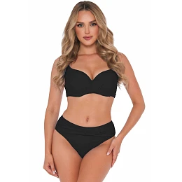 Vystužená podprsenka tvaruje a podporuje poprsie pre atraktívny a stabilný vzhľad. Nastaviteľné a odnímateľné ramienka umožňujú prispôsobiť plavky individuálnym preferenciám a zapínanie na chrbte zvyšuje pohodlie. Klasicky strihaný spodný diel s jemným riasením dodáva eleganciu a opticky tvaruje siluetu.