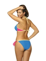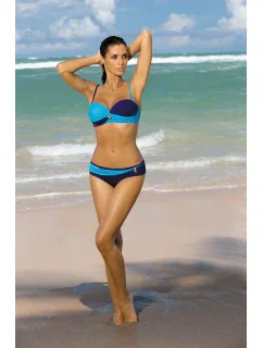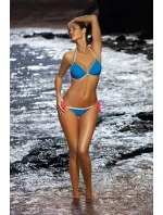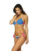 Podprsenka je určená pre stredné a menšie prsia, vystužená, s trvalo umiestnenou push-up vypchávkou. Spolu so zvislou kosticou pevne približuje prsia k dekoltu, nadvihuje ich a opticky zväčšuje. Vytvára zmyselný dekolt. Ozdobné, kontrastné lemovanie v hornej časti podprsenky prechádza do štíhlych ramienok, pekne sa zaväzuje za krkom. Obvod s vložkami v kontrastnej, šťavnatej farbe sa zaväzuje na chrbte. Spodný diel dokonale zladený s podprsenkou, hladký, sexi zaviazaný na bokoch, pôsobí mega žensky. V týchto plavkách na pláži určite vyniknete!