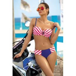 Staňte se tvůrcem trendů! Vyberte si plavky, ve kterých budete na pláži udávat trendy. Zde je návrh pro odvážné ženy - sexy dvoudílné plavky se smyslnými námořnickými pruhy doplněné (odnímatelnou) broží. Profesionálně modelovaná podprsenka má vyztužené košíčky s kosticemi a (vyjímatelné) push-up vycpávky, které umístěné ve spodní části košíčků prsa zvednou, přiblíží k sobě a zvětší je o celou velikost. Zaručují elegantní vzhled. Push up vycpávky jsou k dispozici ve velikostech S, M, L, XL. Nastavitelné popruhy, plně odnímatelné (můžete si rovnoměrně opálit tělo). Podprsenka se zavazuje na zádech. Klasický střih spodního dílu pěkně zvýrazňuje linii boků a je velmi pohodlný.