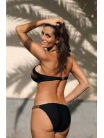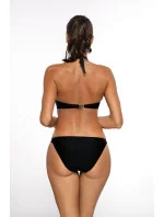 Čierne, veľmi ženské dvojdielne plavky so zlatými vsadkami a zvodným push-up efektom. Aktuálne módny štýl Soft Glamour kombinuje lesklé zlaté akcenty s univerzálnym, elegantným čiernym základom.