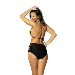 Jedny z nejlepších plavek tohoto léta. Horní díl je založen na střihu bikin, s vyztuženými košíčky, bez kostic, spodní díl - novinka! - kalhotky s vysokým pasem a "prasklinami" na bocích. Oblečte si ho a okamžitě si ho zamilujete! Podprsenka má přiložené push-up vycpávky, které jsou z modelu odnímatelné a jsou k dispozici ve velikostech S, M, L. Pomáhají zvednout, zpevnit a vytvarovat prsa a dodávají jim objem. Popruhy a obvod jsou svázané. Kalhotky v černé barvě lákají na boční průstřihy, díky nimž nohy vypadají delší a ještě více sexy. Střih zakrývá bříško, což je jedna z největších výhod těchto plavek. Takový módní střih, krásné barvy, sexy (a pohodlné) spodky a tak úžasné překvapení! Vyzkoušejte to!