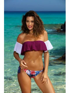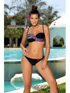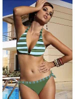 To znamená, že tieto plavky pripomínajú sexi bikiny a z vnútornej strany majú trvalý (odolný) push-up košíček, ktorý sa nedá vybrať. Efekt je ten, že podprsenka zhromažďuje prsia od bokov, nadvihuje ich a opticky ich zväčšuje, čím vám dodáva sebavedomie. Plavky sú potiahnuté elegantnou talianskou rebrovanou tkaninou a kombinované s dovolenkovými farbami. V páse a na ramienkach sa zaväzujú. Spodný diel je hladký a zaväzuje sa na bokoch a midi strih je veľmi pohodlný. Zloženie: 82 % polyamid, 18 % elastan.