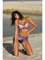 Má veľmi dômyselnú konštrukciu - podprsenka je vystužená špeciálnou penou, pekne stláča a tvaruje prsia, má podšívku, ktorá spevňuje konštrukciu, a push-up, ktorý umožňuje opticky zväčšiť poprsie a zlepšuje symetriu tela (push-up sa z modelu nedá vybrať, je k dispozícii v každej veľkosti plaviek). V páse sa zaväzuje na chrbte. Nohavičky sú o niečo vyššie ako zvyčajne a veľmi pohodlné. Vzorovaný predný diel dopĺňa hladký zadný diel. Vysokokvalitná talianska tkanina: 80 % polyamid, 20 % elastan.