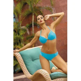 Esencia sviežej farby plus jemný hrášok... Miranda je dokonalou voľbou na pláž. Hladké, vystužené košíčky s kosticami, zvýraznené vzorovaným lemovaním. Jemné riasenie dodáva koketný nádych. Štruktúra sa zbiera a približuje prsia k sebe. Veľkosti S, M, L majú extra (vyberateľné) push-up vypchávky, ktoré ponechané v podprsenke sexi zväčšujú veľkosť pŕs. Podprsenka sa pohodlne zaväzuje za krkom a na chrbte.