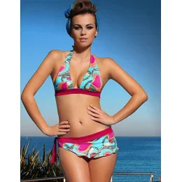 Pokud léto znamená vodu, dovolenou a slunce! A pokud vás láká sluníčko, pak si pořiďte třídílné plavky v líbivých ženských barvách. Tyto plavky byly ušity z vysoce kvalitní italské tkaniny, takže jsou měkké a velmi pohodlné. Trojúhelníkový tvar, vyztužené košíčky s vyjímatelnými vycpávkami. Ramínka se zavazují za krkem, lem se zavazuje na zádech. Mini pareo navazuje na vzor podprsenky a je samostatnou součástí plavek. Hladké a pohodlné bikiny v osvědčeném klasickém tvaru. Složení: 80 % polyamid, 20 % elastan.