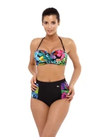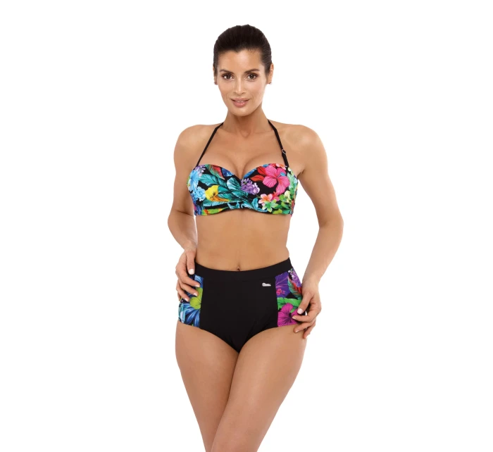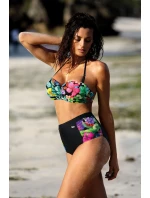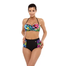 Tato podprsenka s vyztuženými košíčky, kosticemi a velkým push-upem okamžitě pozvedne, vytlačí nahoru a opticky zvětší vaše prsa, takže budete na pláži vypadat sexy. Push-up se dodává v každé velikosti plavek a není z modelu snímatelný. Ramenní popruhy jsou zcela odnímatelné. Svázané vzadu. Kalhotky jsou vyšší, zakrývají bříško a jejich květované boky navíc pomáhají opticky zeštíhlit linii boků. Jedny z nejlepších plavek sezóny! Mega dávka ženskosti! Italská tkanina. Složení: 80 % polyamid, 20 % elastan.