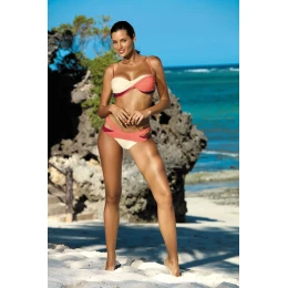 Novinka! Fenomenálne dvojdielne plavky so zatočenými košíčkami pre veľmi prirodzený efekt pevných, nadvihnutých a opticky zväčšených pŕs. Náš favorit v tejto kolekcii! Vystužený spodný diel, s push up vypchávkami, s bočnými veľrybími kosticami. Nastaviteľné ramienka, s možnosťou ich úplného odopnutia (môžete si rovnomerne opáliť telo). Obvod so zapínaním na pracku. Rajské farby. Spodný diel s veľmi zaujímavým strihom - s rozparky na bokoch, veľmi dobre padnúci a pekne tvarujúci boky. Podšité, nepriehľadné a s perfektnou výškou.