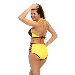 Podprsenka se pohodlně zavazuje za krkem a na zádech a má vyztužené košíčky, které jsou obohacené o push-up, takže prsa jsou dokonale shromážděná, pozvednutá a zvětšená (push-up výplň je přítomna v každé velikosti plavek a není z modelu vyjímatelná). Ve výstřihu je výstřih z hladkého černého tylu. Na košíčcích je vsadka z látky imitující smyslnou krajku. Kalhotky jsou skutečným hitem - jsou vyšší, a proto velmi pohodlné, navíc zakrývají bříško a díky elastickým páskům na bocích vypadají stále žensky a svůdně. Italská tkanina, krásné barvy na výběr. Nechte se zlákat, protože to stojí za to. Složení: 80 % polyamid, 20 % elastan.