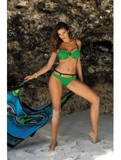 Podprsenka s kosticami a vystuženými košíčkami, ktoré sú obohatené o zabudovaný permanentný push-up, dokonale nadvihuje, tvaruje a opticky zväčšuje prsia. Je ideálna pre malé a stredne veľké prsia. Vzorované zdobenie vyzerá na slnku nádherne. Košíčky sú v spodnej časti mierne nariasené. Ramienka sú tenké, dĺžkovo nastaviteľné, obvod je elastický a zapínanie na pracku je pohodlné. Spodná časť plaviek s ozdobným zvrškom je veľmi pohodlná. Predná časť je pohodlne podšitá.