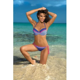 Krásné a velmi tvarované bikiny Wendy, tentokrát s podprsenkou s vyztuženými košíčky. Žhavá nabídka pro tuto sezónu! Podprsenka má boční a spodní kostice, sexy zvedá prsa, drží je na místě a hlavně má jemnou, pevnou push-up výplň - prsa vypadají větší. Velikost XXL bez push up, má pouze vyztužené košíčky. Drobné hrášky na látce jsou zvýrazněny chladnými, svátečními barvami. Podprsenka se pohodlně zavazuje za krkem i na zádech. Kalhotky jsou velmi dobře tvarované, poskytují pocit pohodlí a navíc se zavazují na obou stranách boků.