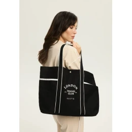 Látková letná taška od spoločnosti Esotiq je praktickým doplnkom na pláž alebo k bazénu, ktorý ponúka dostatok priestoru na všetky potrebné veci a chráni ich pred pieskom. Vo vnútri sa nachádza vnútorné vrecko so zapínaním na kovové cvočky. Na vonkajšej strane sú po obvode vrecká na opaľovací krém, obľúbenú knihu a iné plážové potreby. Dno tašky je vystužené a dobre drží tvar.