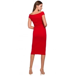 model 18002411 Pletené šaty na ramena červené - Makover