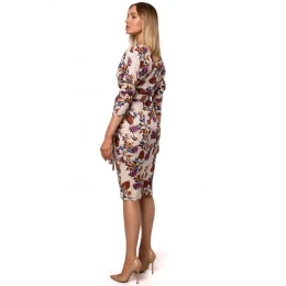 model 18002808 Pletené šaty s potiskem, zavinovací horní částí a páskem na zavazování model 2 - Moe