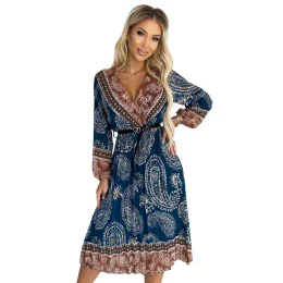 Tyto šaty značky Numoco basic jsou evropským výrobkem a jsou k dostání se světle modro-hnědým vzorem.