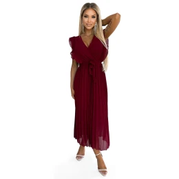 Pridanie recenzie k Plisované dámské šaty v vínové barvě s výstřihem a páskem model 21819820 - numoco basic
