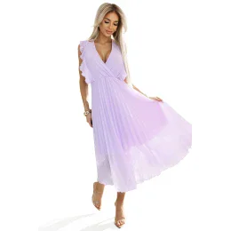Emily - limitovaná edice! plisované šifonové midi šaty s výstřihem a volánky. lehké, vzdušné a ženské, ideální pro zvláštní příležitosti. barva vřes. polský výrobek. značka Numoco. ✨ LIMITOVANÁ EDICE ✨