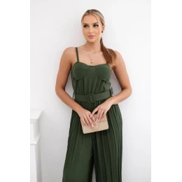 Plisovaný overal bez ramienok je elegantný a sofistikovaný kúsok oblečenia, ktorý dodáva ženskej siluete jemnosť a ľahkosť. Plisované látky sú módne a dodávajú oblečeniu jedinečný charakter a ich kombinácia s kombinézou vytvára efektný a štýlový vzhľad. Ramienka dodávajú obleku jemnosť a ženský pôvab a zároveň zabezpečujú pohodlie pri nosení. Je to ideálna voľba na mnohé príležitosti, od letných večierkov až po elegantné večery, kde chcete vyzerať štýlovo a pohodlne. Okrem toho je kombinéza aj praktická, pretože tvorí kompletný styling v jednom prvku, čo uľahčuje zostavenie outfitu. Veľkosť je univerzálna a vyhovuje ľuďom vo veľkostiach S, M a L.