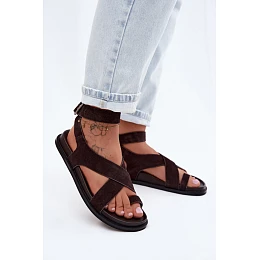 Plochá sandály z přírodního semiše D&A CR61-3049 Čokoládové