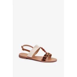 Płaskie Sandały Damskie Z Koralikami Panterka Brązowe Virona