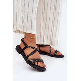 Ploché Sandály S Ozdobnými Pásky model 21697171 Černé - VINCEZA