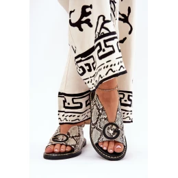 Płaskie Sandały Z Ozdobą Wężowy Wzór Beżowo-Brązowe Haliones