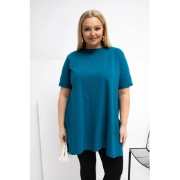 Predĺžený voľný top v ležérnom štýle, ideálny na každodenné príležitosti. Je vyrobený z príjemnej bavlny s prídavkom elastanu, vďaka čomu je mäkký, elastický a pohodlný na celodenné nosenie. Hladký vzor umožňuje jednoduché kombinovanie topu s mnohými štýlmi. Model má okrúhly výstrih a krátke rukávy, čo mu dodáva univerzálny, voľný charakter. Absencia zapínania zdôrazňuje jednoduchý, pohodlný tvar. Ďalšou výhodou je volánik na chrbte, ktorý jemne zvýrazňuje strih a dodáva mu ženský šarm. Ideálna každodenná ponuka k džínsom, legínam alebo sukniam.